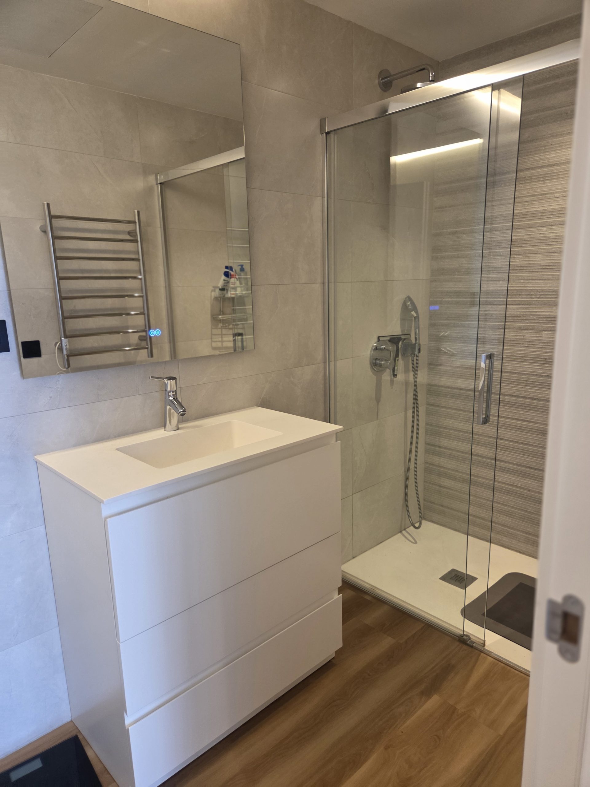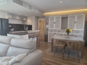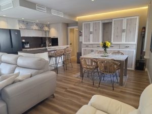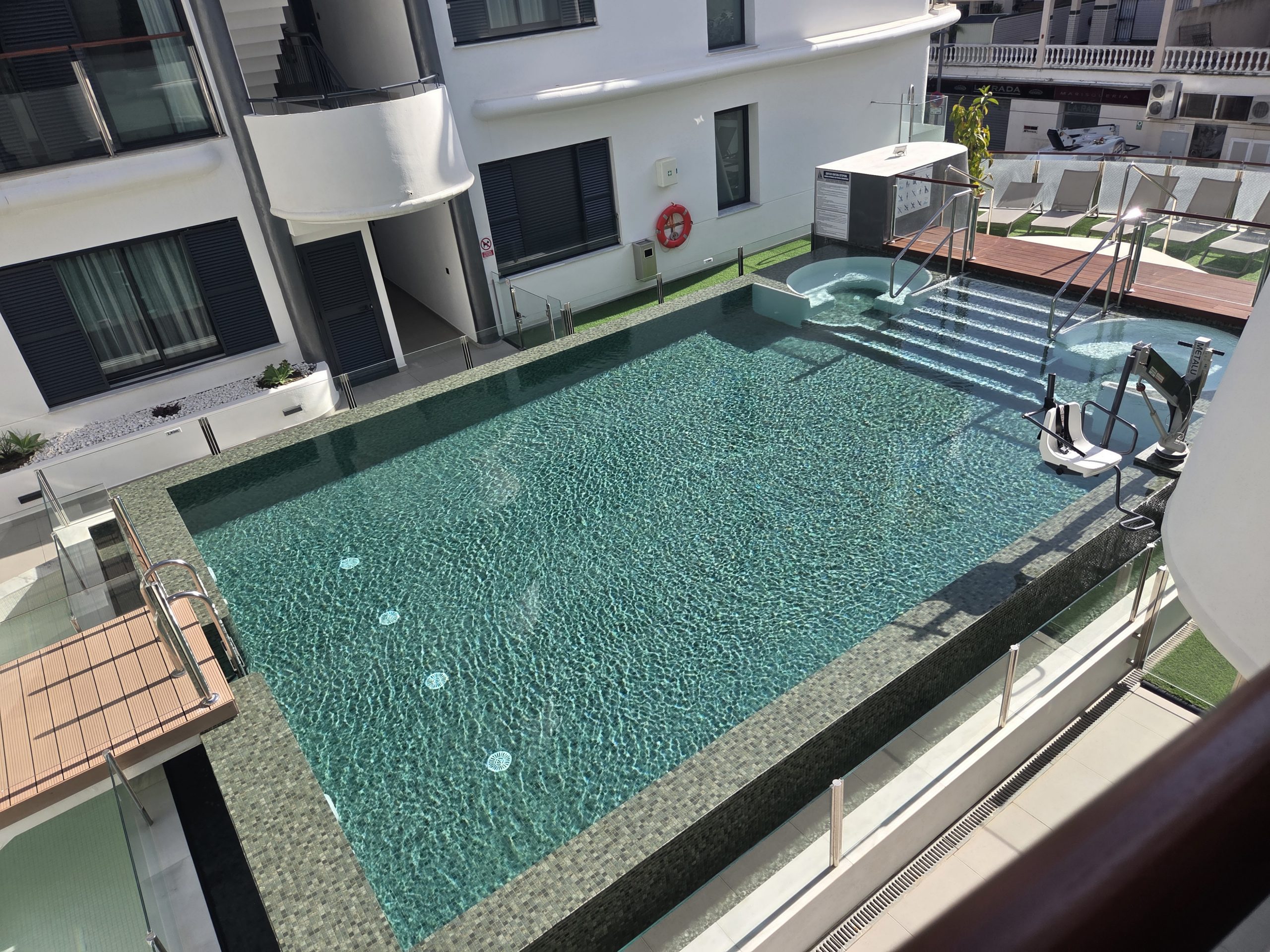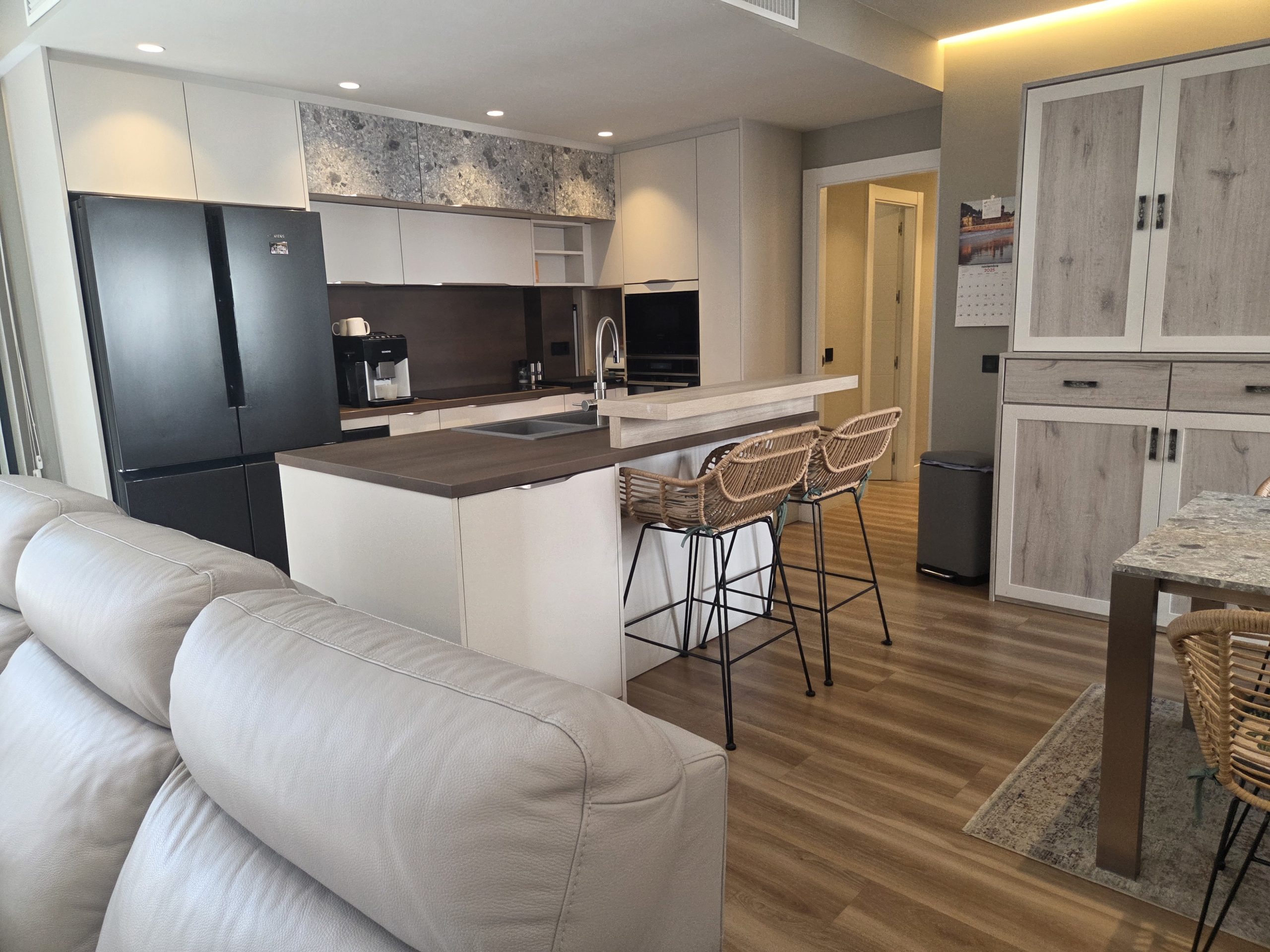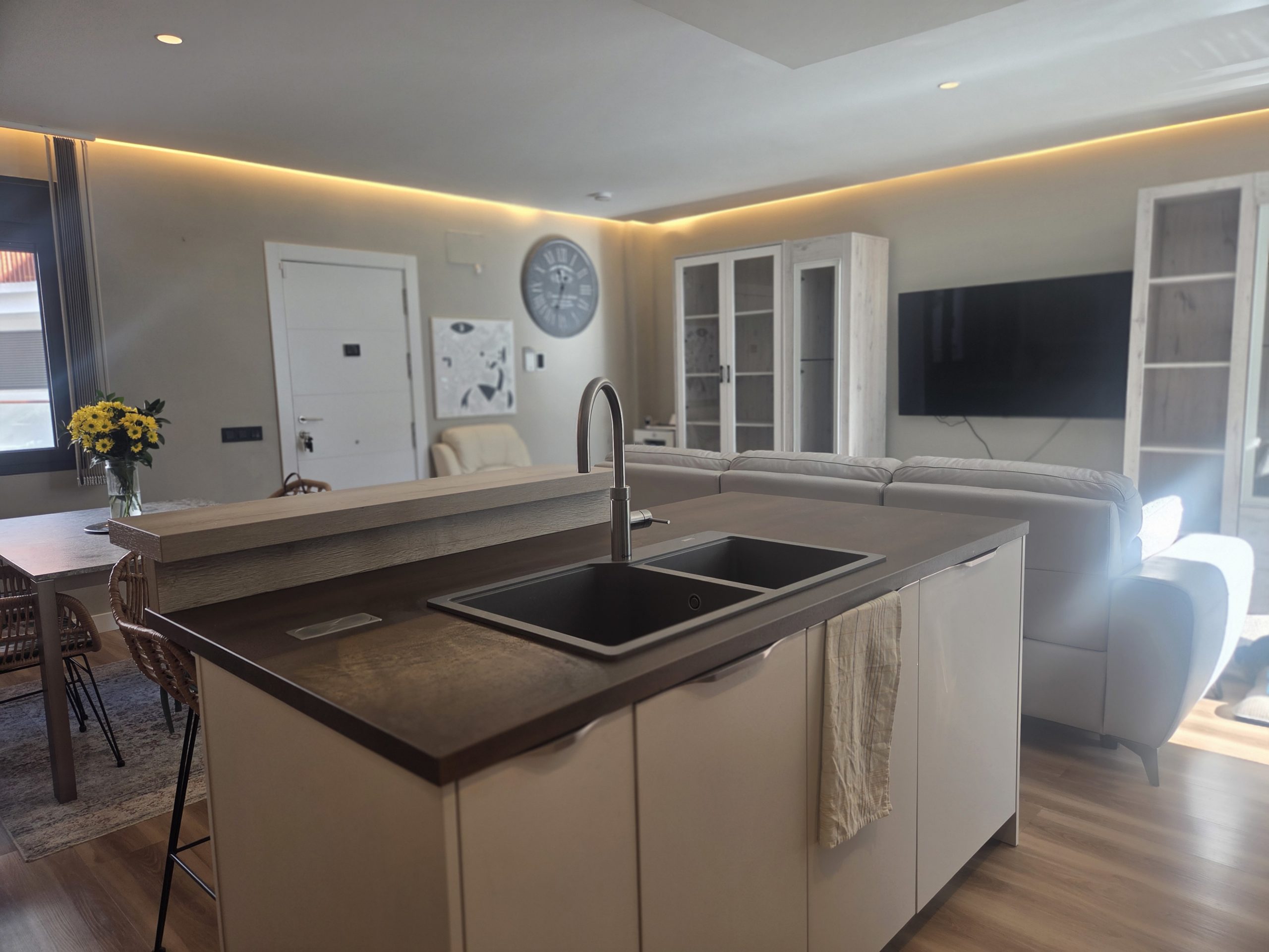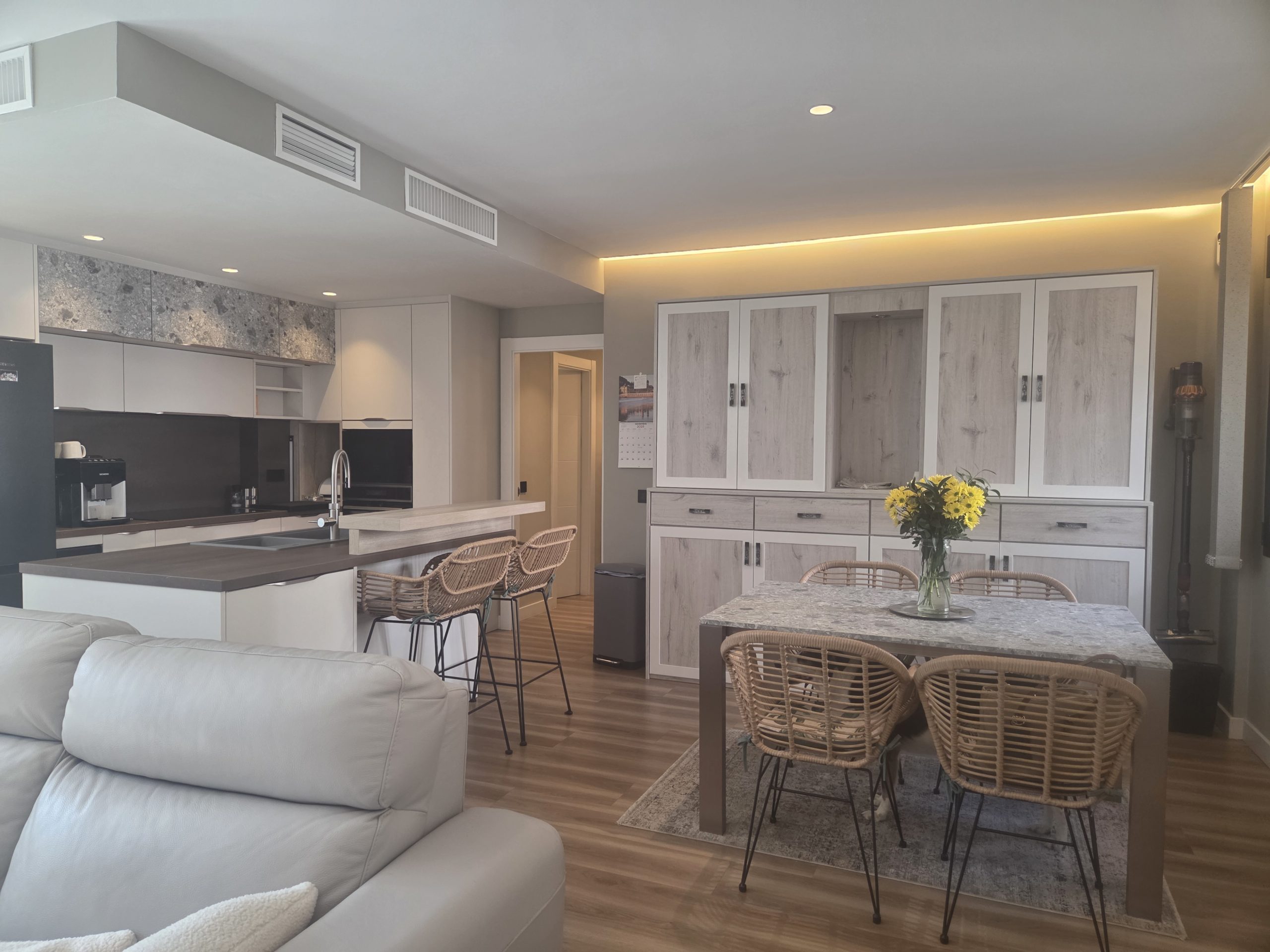 Impresionante vivienda ubicada en pleno centro y junto al mar. Esta fabulosa vivienda cuenta con 136m2 y dispone de 4 dormitorios dobles con armarios empotrados, 3 baños, varias terrazas, cocina de diseño con isla, vinoteca, frigorífico doble, abierta a amplio salón comedor con terraza y vistas a una magnífica piscina con jacuzzi y zona de hamacas. Muy soleado y luminoso. Orientación sur. Además dispone de 2 plazas de garaje y un amplio trastero. Cuenta con un moderno sistema de domótica incorporada para toda la vivienda, desde su móvil podrá subir persianas, poner el aire acondicionado, encender luces, etc….Todos los materiales empleados en la construcción son de máxima calidad, grifería, fontanería, persianas, mosquiteras. Se vende amueblado!!!!! Venga a conocer esta maravillosa vivienda que enamora nada más entrar……